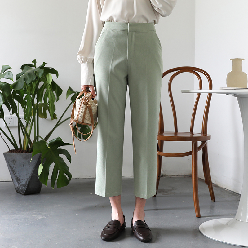 Minimalist rag green high waist suit Pendant Straight Barrel Pants Loose Casual 90% Pants Small Subspring Summer Long Pants