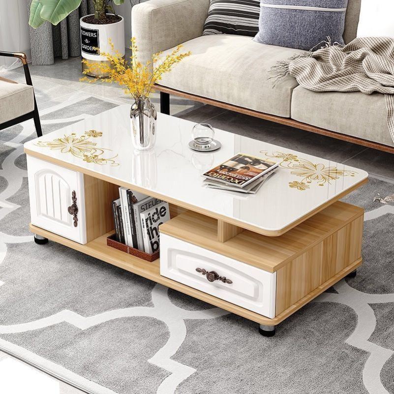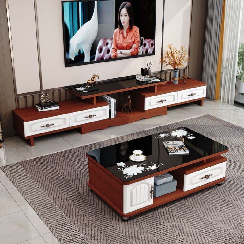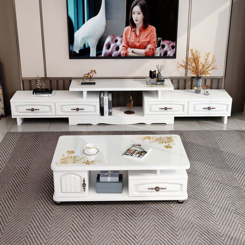 Tea table TV cabinet combination suit small family style living room European style modern minimalist tempered glass tea table table special price-Taobao