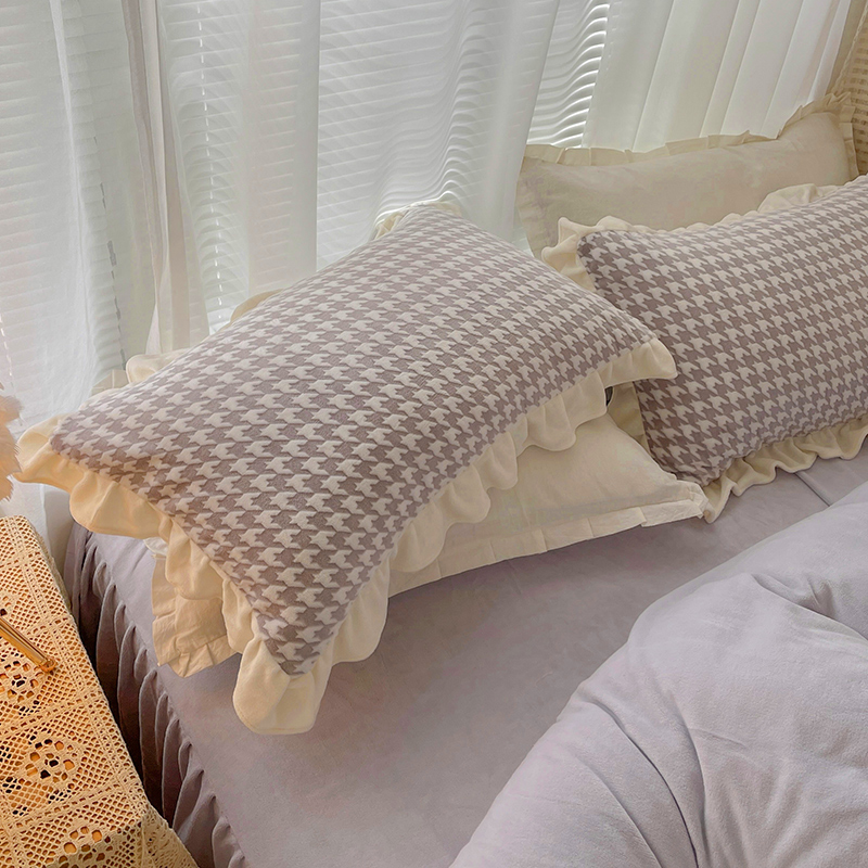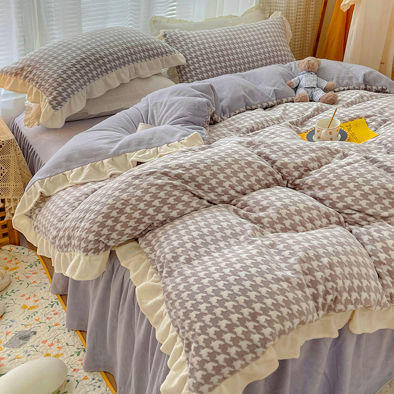 ins wind double sided thickened milk suede four pieces of cover flange coral suede bed bedding winter plus suede quilt cover bed linen 4