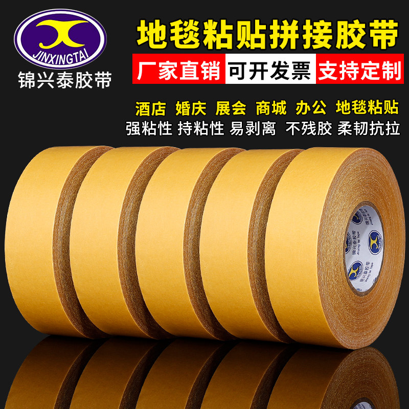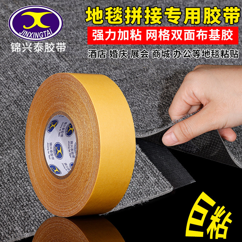 Double-sided adhesive cloth base with high viscosity woven cloth two sides glue powerful yellow transparent grid exhibition Wedding carpet fixed splicing adhesive tape super-stick without scar wall sticker Spring couplets strong force rubber cloth