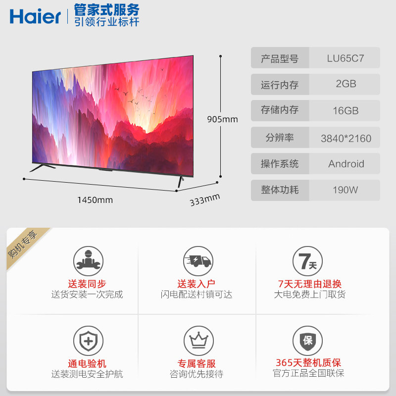 Haier LU65C7 65-inch 4K high-definition intelligent voice voice-controlled TV LCD Home Smart Network 60