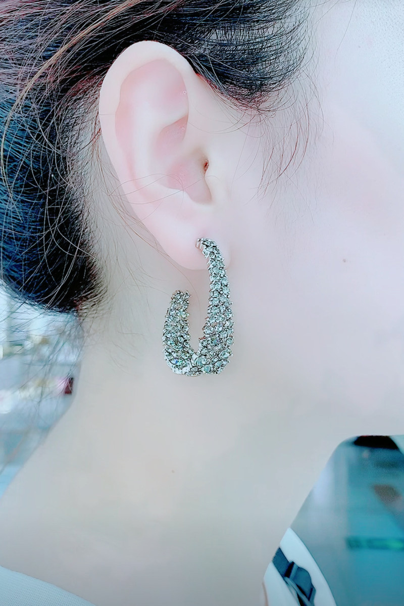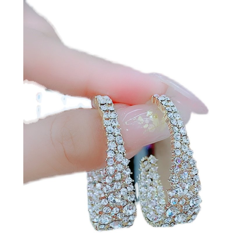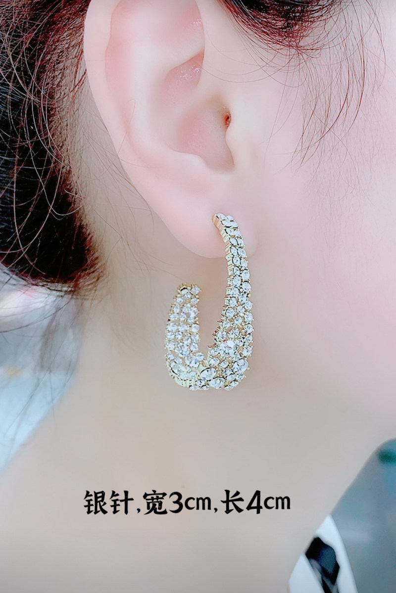 Retro Baroque Water Drill Ear Ring Full Drill Circle Earrings High Level Sensual Light Extravagant Temperament Net Red Silver Needle Exaggerated Earrings