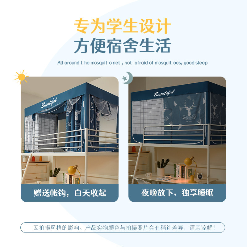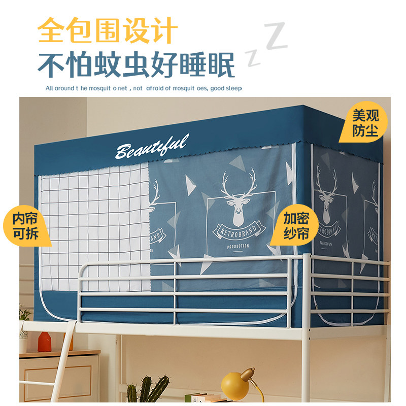 Blackout bed curtain mosquito net integrated student dormitory upper and lower dormitory upper and lower bunk universal anti-fully enclosed with bracket