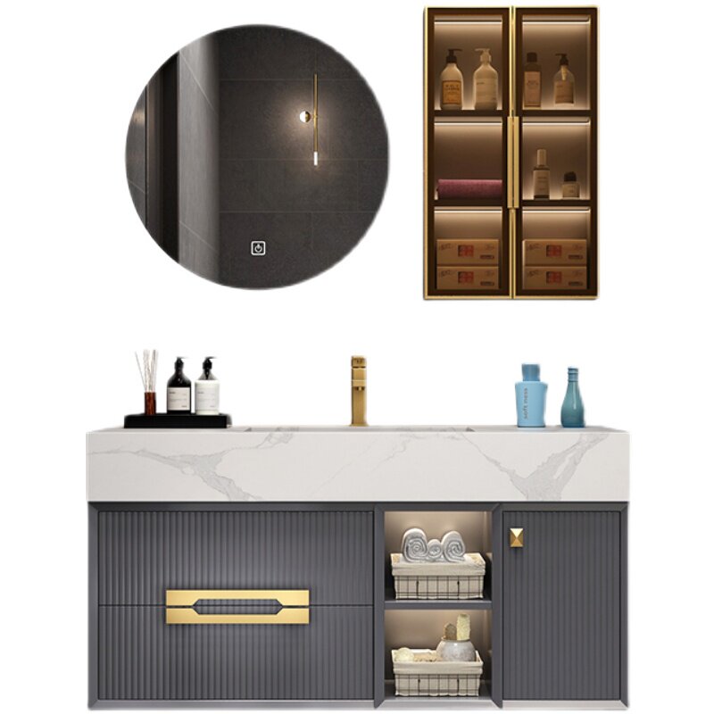 Oak Rock Board Integrated Bath Cabinet Combination Light Lavish Makeup Room Wash Face Wash Basin Wash Terrace Basin Cabinet Intelligent Mirror Cabinet