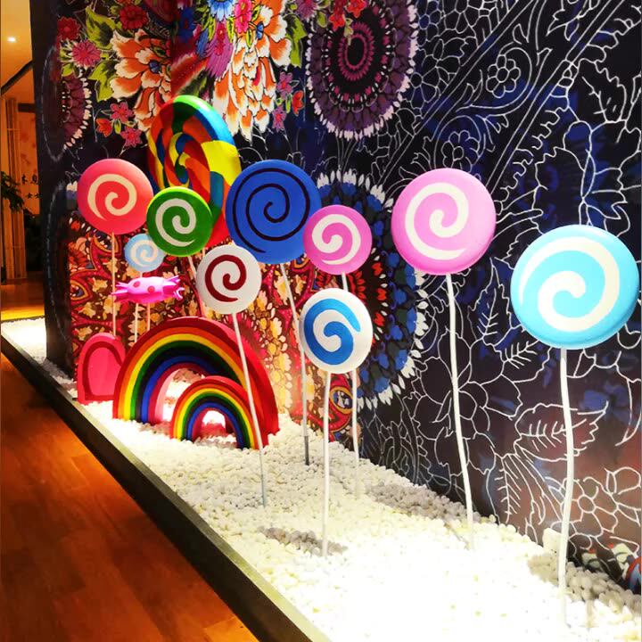 Shopping mall atrium large dp point decoration Christmas tree Meichen color candy lollipop layout props