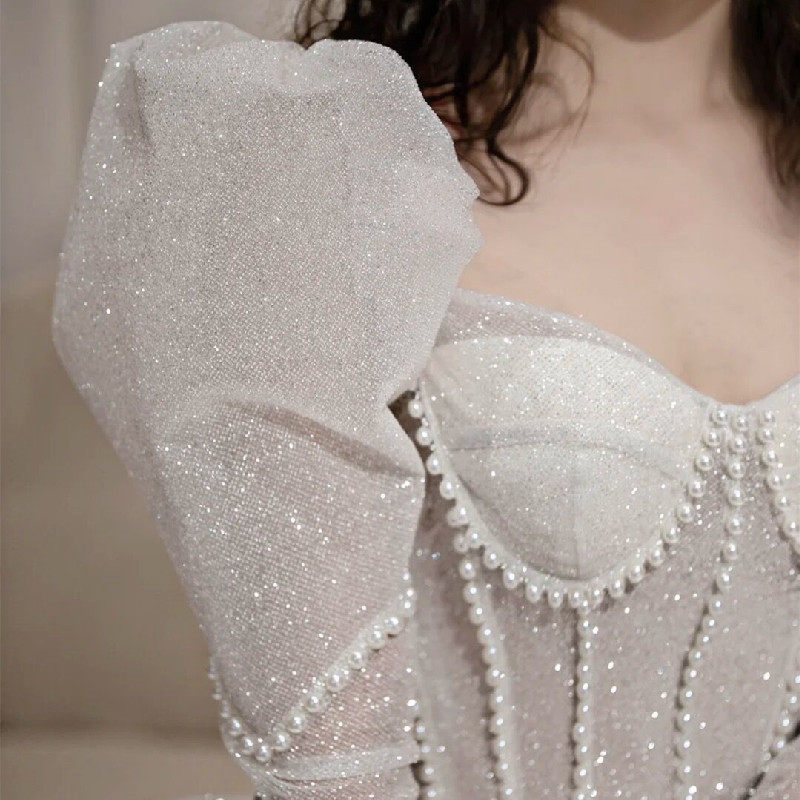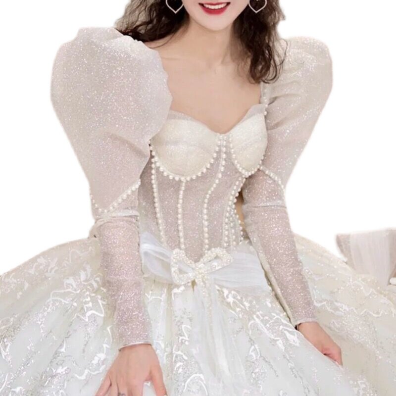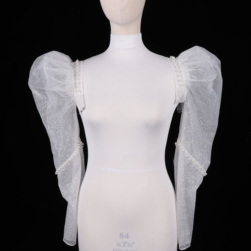 Detachable Vintage Horseshoe Sleeves Beaded Shoulder Sleeves Bridal Wedding Dress With Puff Sleeves Covering Arms Long Sleeves