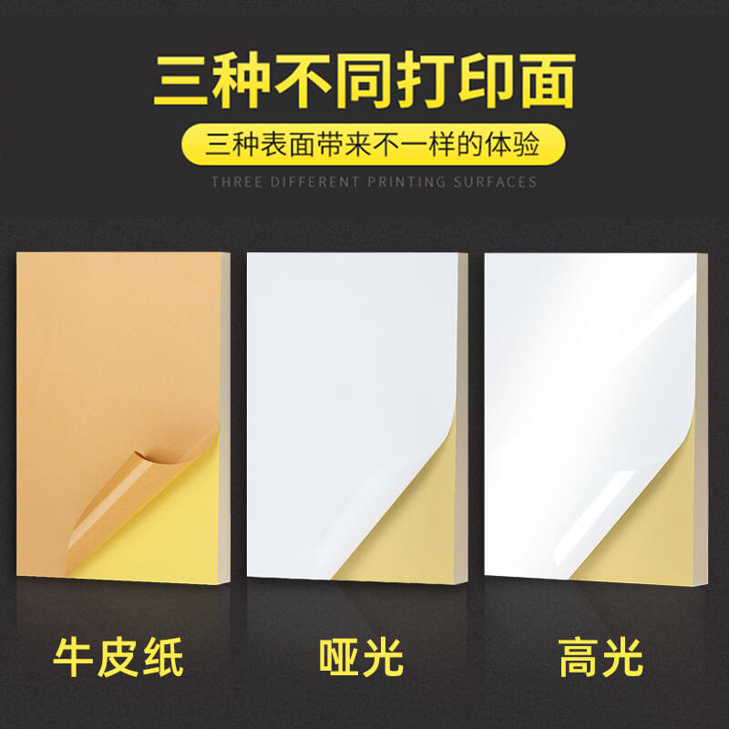 A4 adhesive kraft photocopying paper white copper version paper inkjet laser printing back adhesive paper blank sticker high light matt label sticker can be hand-written and randomly cut coloring thickened adhesive sticker