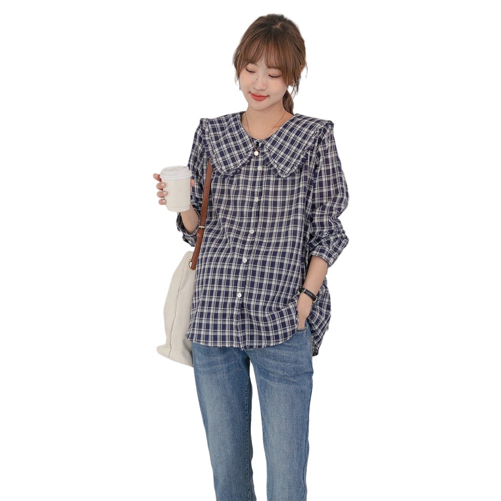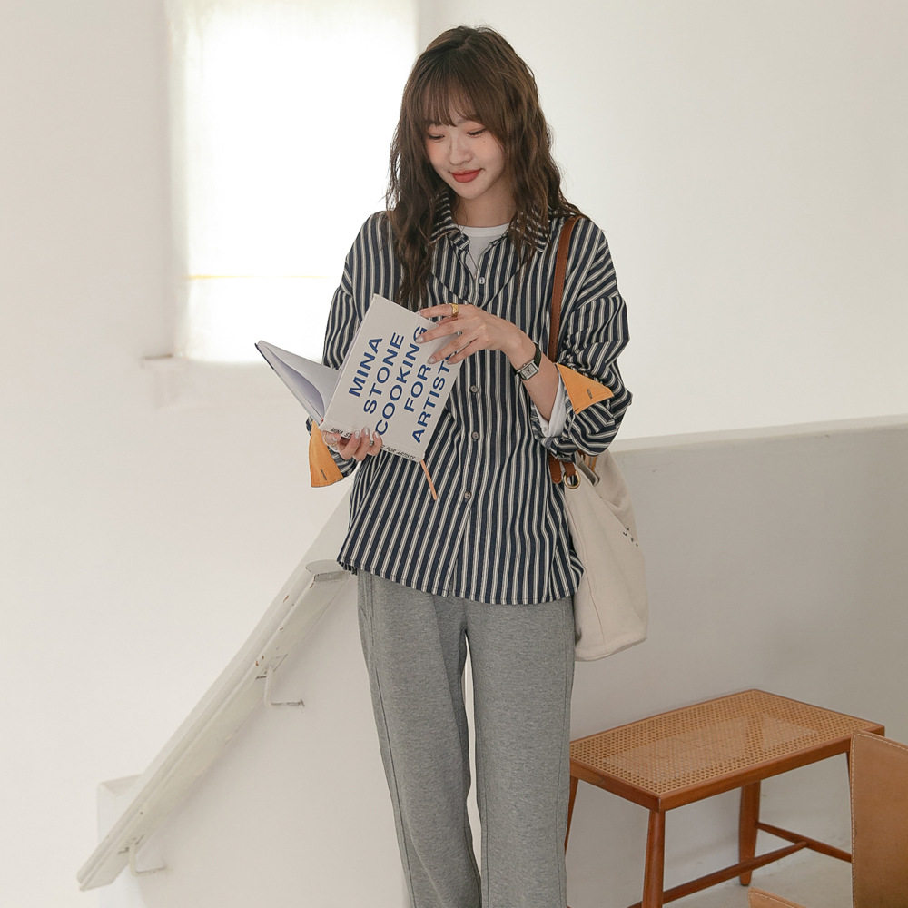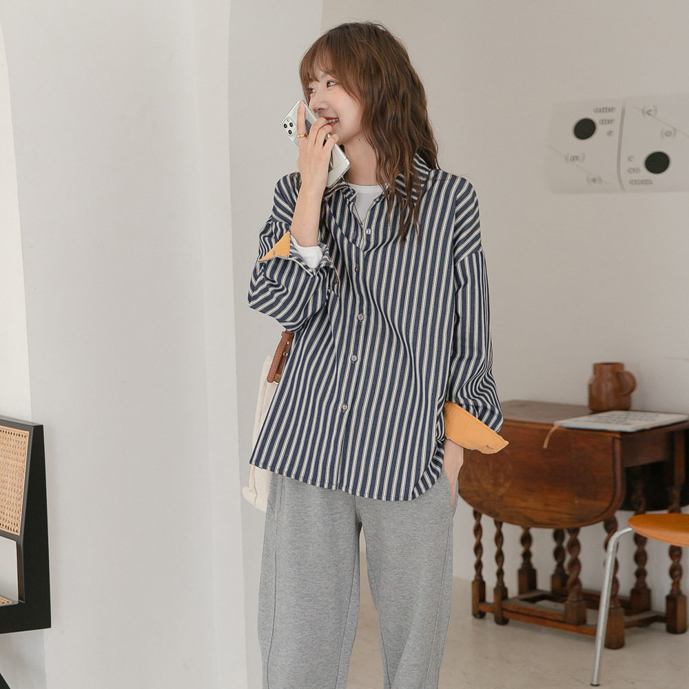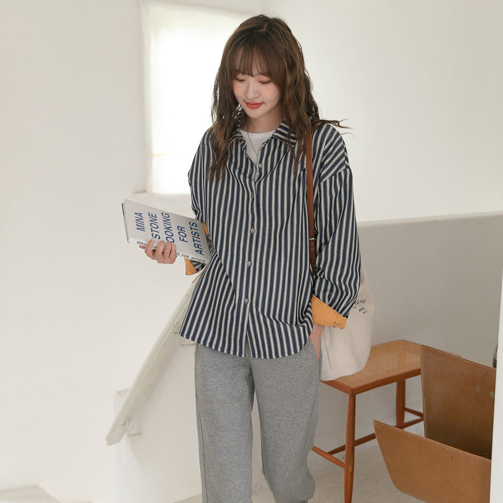Pregnant women's blouses to work autumn new port Taste Career Outwear without Explicit Shirt Tide Spicy Mother's Conspicuated Striped Shirt