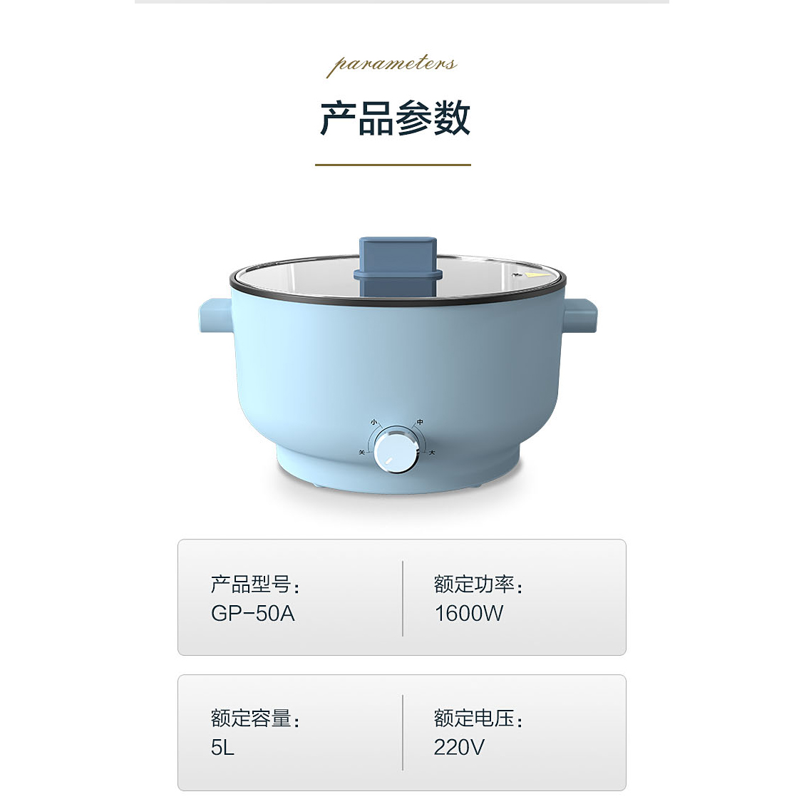 Vatti electric hot pot household multi-function electric cooking electric non-stick electric wok 5L large capacity deepened