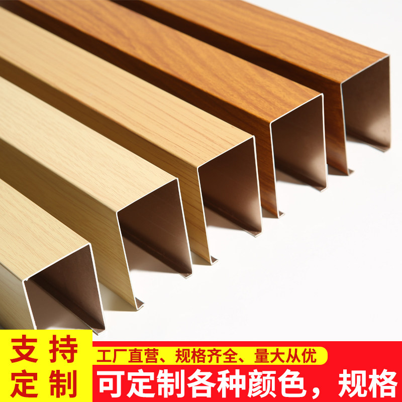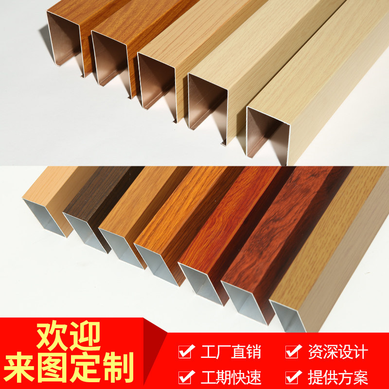 Chengdu aluminium square through suspended ceiling wood grain u type groove buckle plate roller coating decorative material aluminium square pipe rectangular partition ceiling