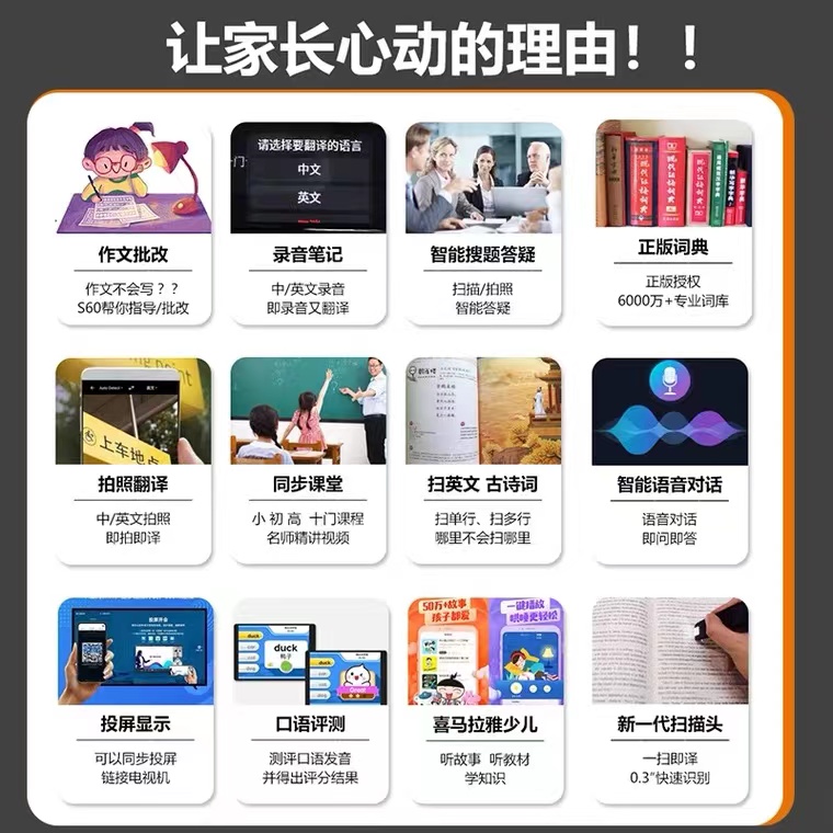 Primary school high school general subject learning pen 5-inch large screen scan questions translation dictionary pen composition correction projection screen multilingual translation