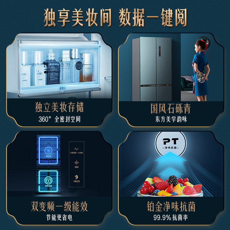 Beauty 525L double - paired cross - open four large capacity ultra - thin air - cooled household refrigerator