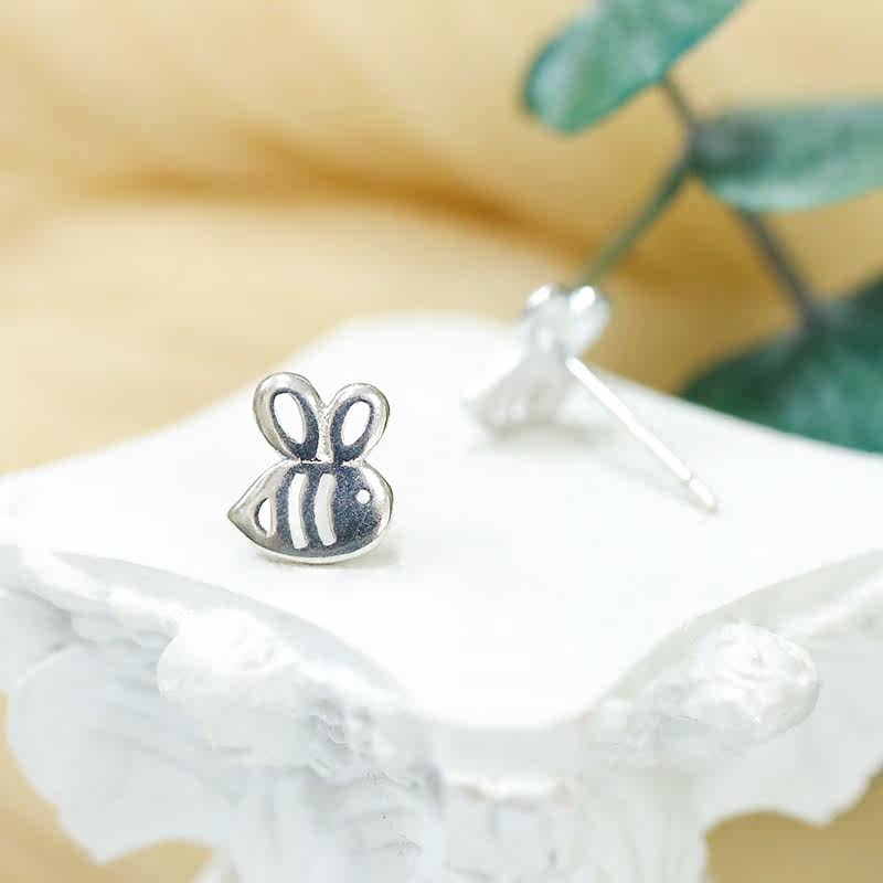 S925 sterling silver petite bee ear pin simple cute temperament insect earring earring earring ear bone stud silver jewelry women's