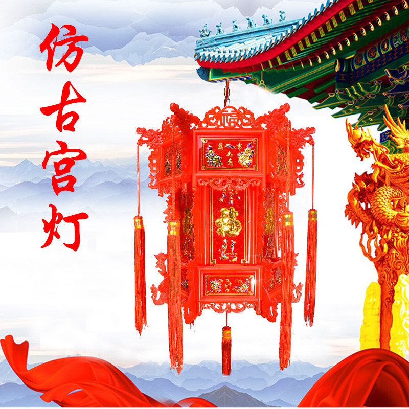 Hexagonal Dragon Lantern Palace Lantern Imitation Ancient Chinese Rotary Chandelia Led Outdoor China Wind Classical New Year hanging decoration-Taobao