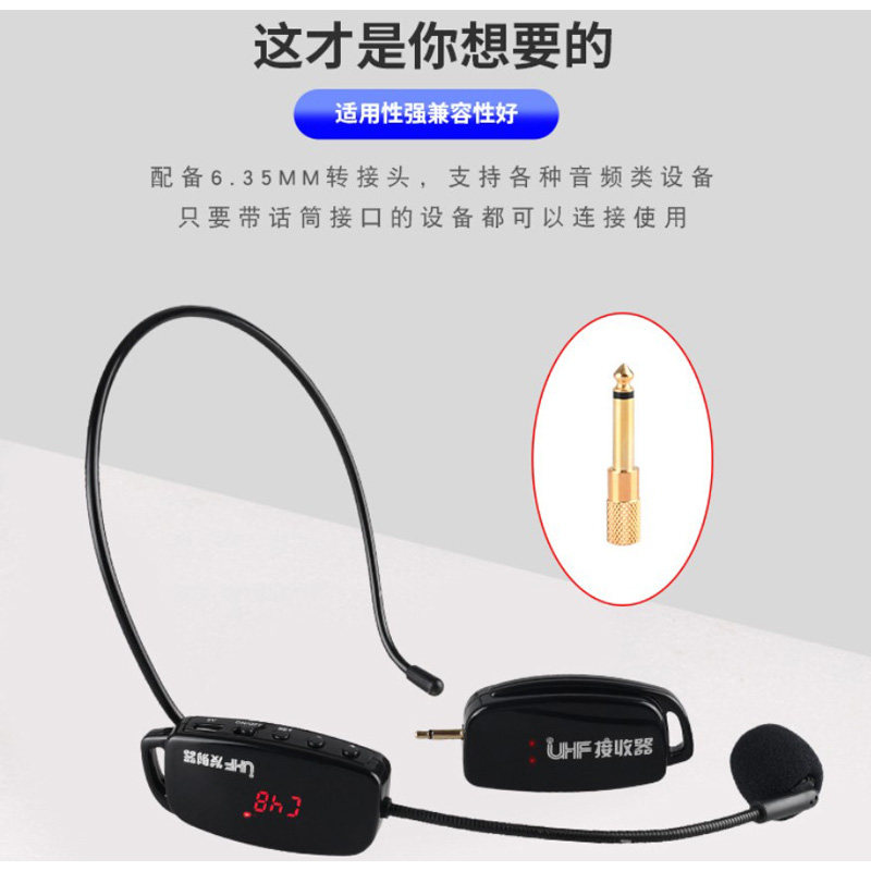 UHF Wireless Headphones Microphone Bee Profile Teaching U-section Square Dance Anti-sound Head Wearing Microphone