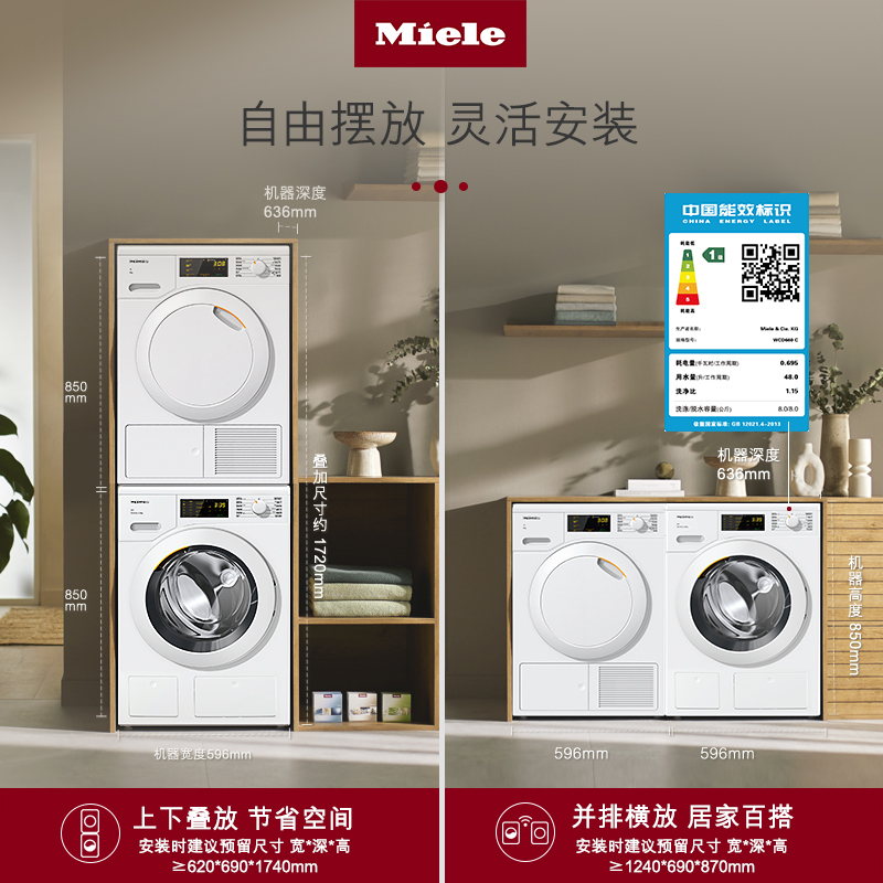 Merino Miele import drum washing machine WCD660 heat pump dryer TCC260 washing and drying suit combination