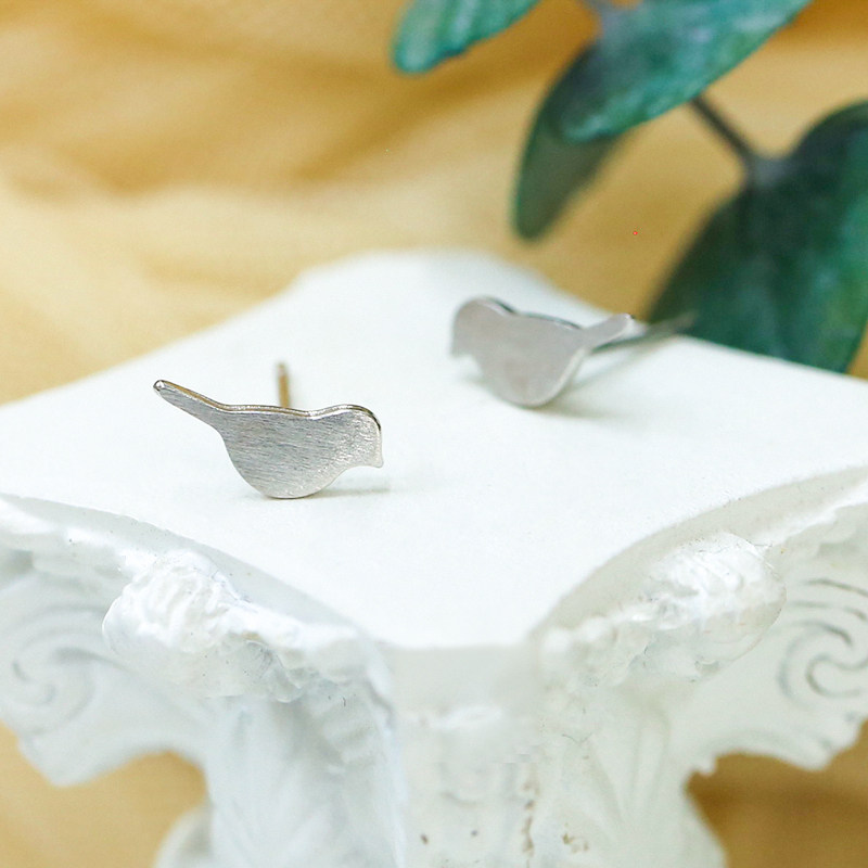 Japan-ROK s925 pure silver small birdie ear pin cute little animal earrings simple ear bone nail pendant silver decorated female style