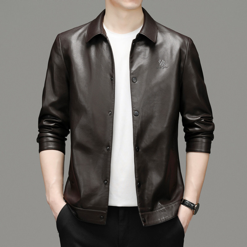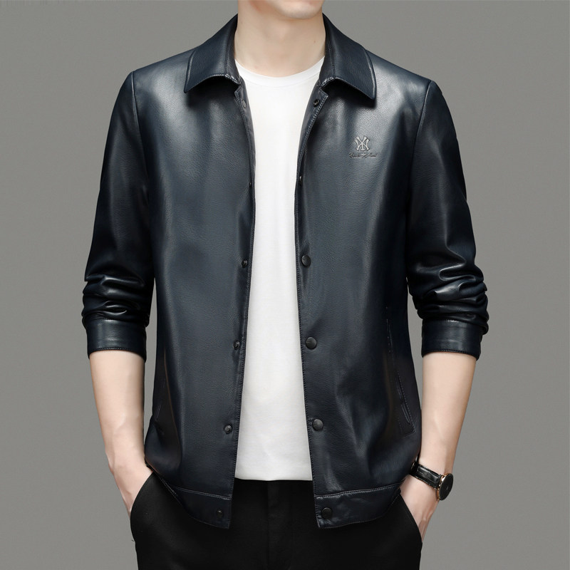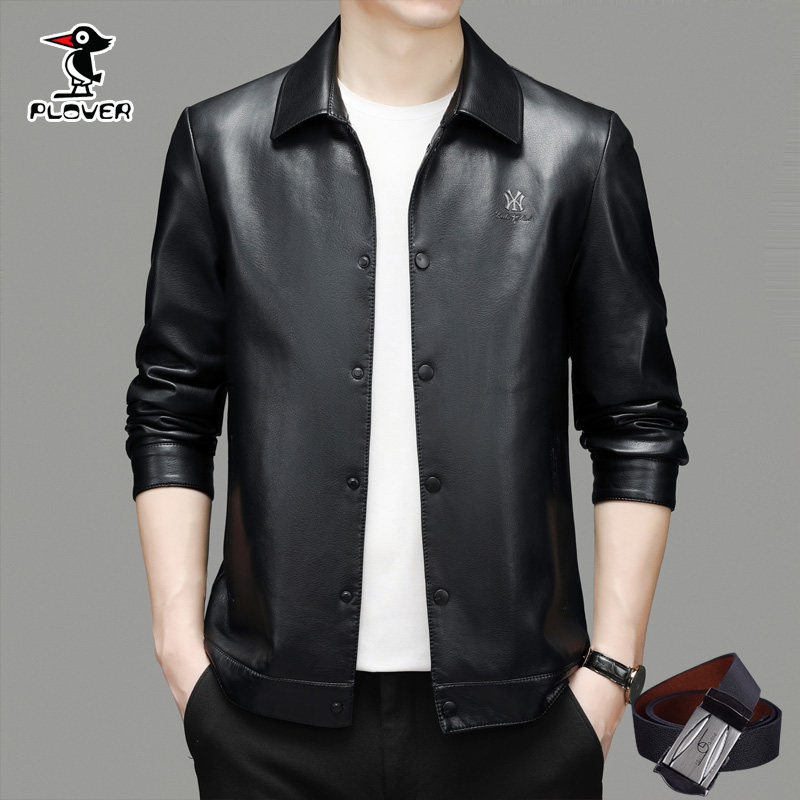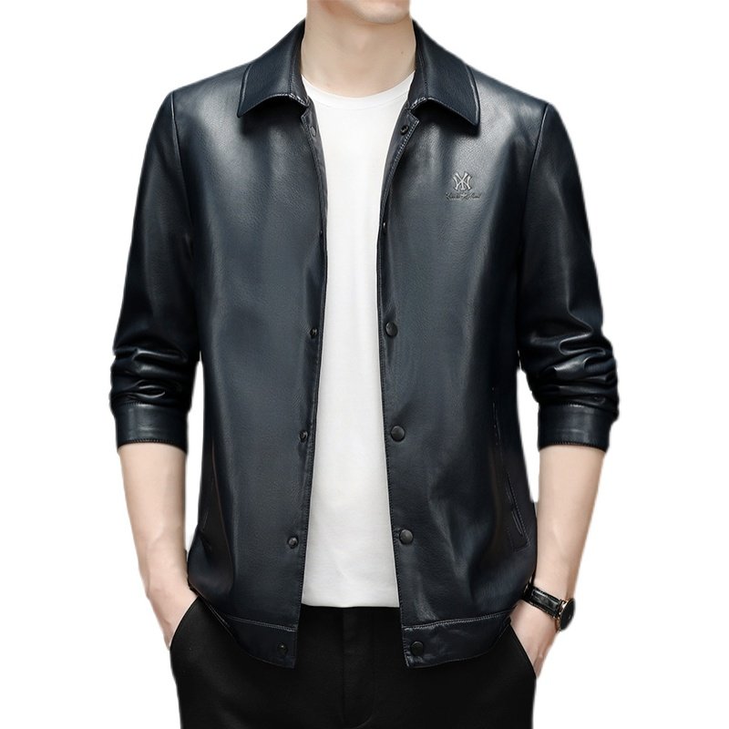 Sheep Leather Genuine Leather Leather Clothing Male Casual Pure Color Leather Outer Cover Upturned Middle Aged Short Plus Suede Thickened Leather Jacket