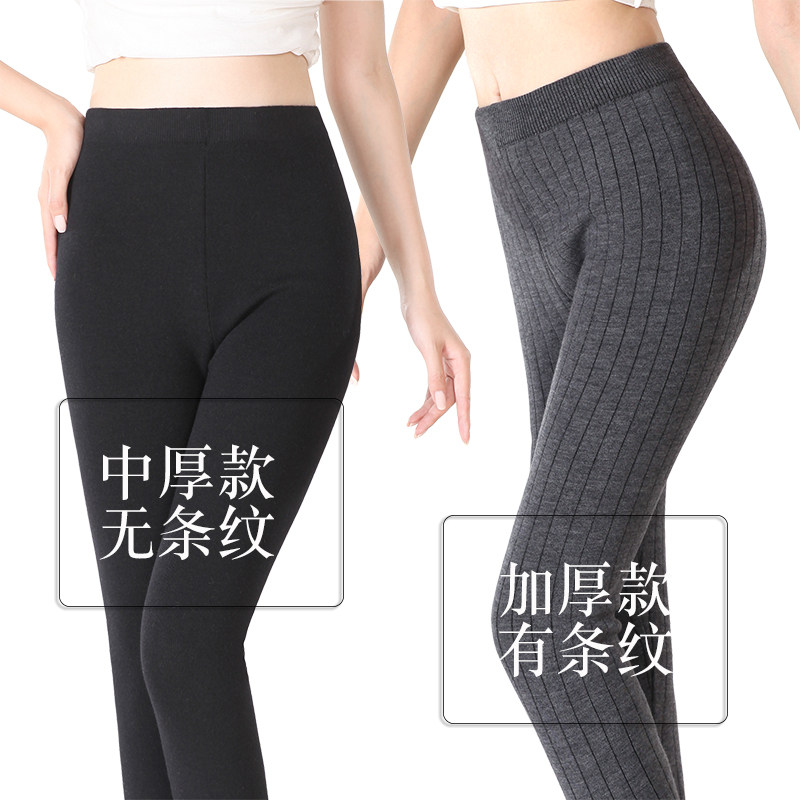 Women's wool trousers thickened medium thick cashmere trousers knitted wool trousers slim mid-high waist warm trousers leggings autumn and winter