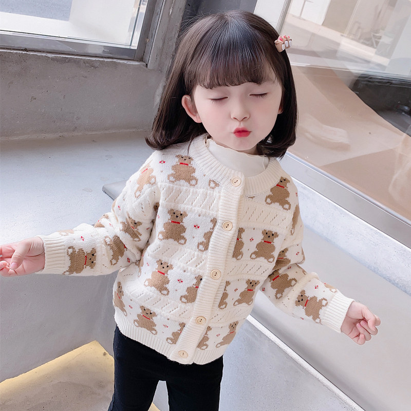 Girl Sweater Jacket Spring Autumn 2022 New Autumn Winter Women's Baby Polo Children Knit Cardiovert Spring Clothing