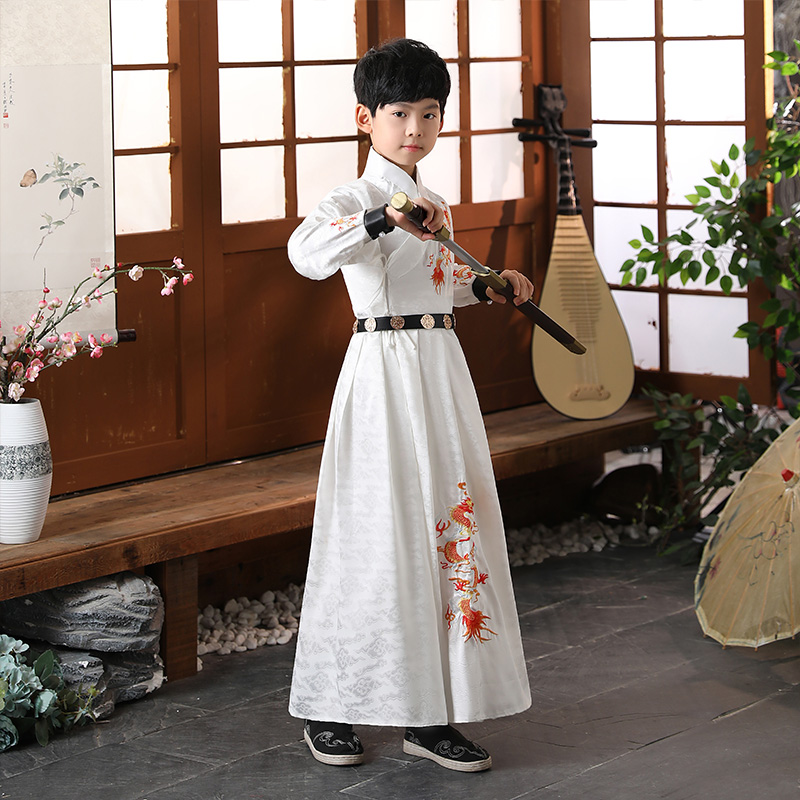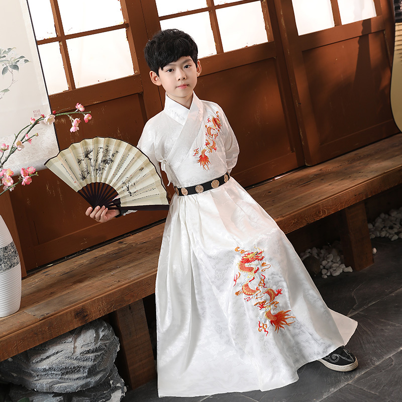 Boy Han clothes long gown original ancient dress Gongzi Three words through Tang Costume Children's Spring And Autumn, and Ancient Wind Super Fairy Winter Clothing