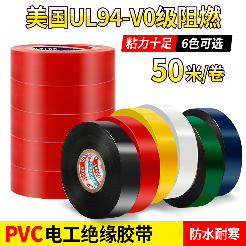50 meters special electrical tape insulating tape high temperature flame retardant waterproof pvc widened electrical tape ultra-thin wholesale white black two-color red self-adhesive electrical tape insulating tape large roll