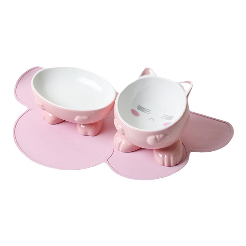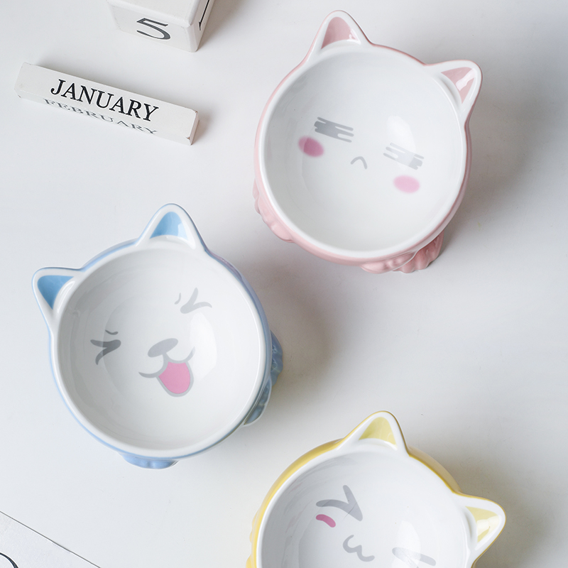 Cat Bowl Ceramic High Foot Protection Cervical Spine Anti-Overturning Water Bowl Double Bowl Pet Supplies Dogs Cat Cat Food Bowl Cat Food Basin