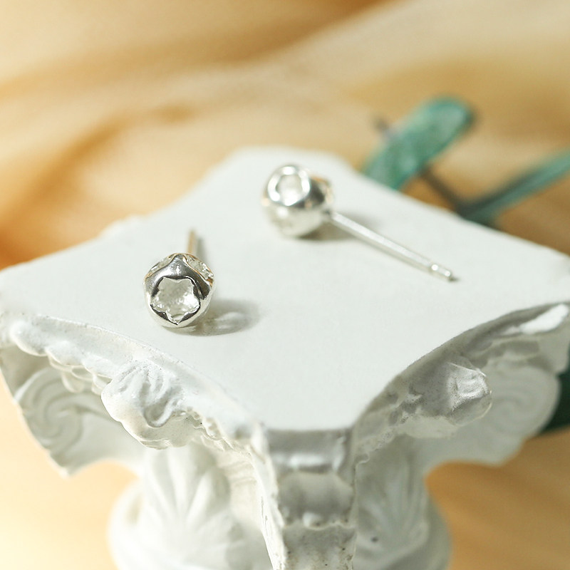 s925 pure silver flowers small round ear pin cute sweet and beautiful earrings Fashion eardrop earbone nail silver ornament female style