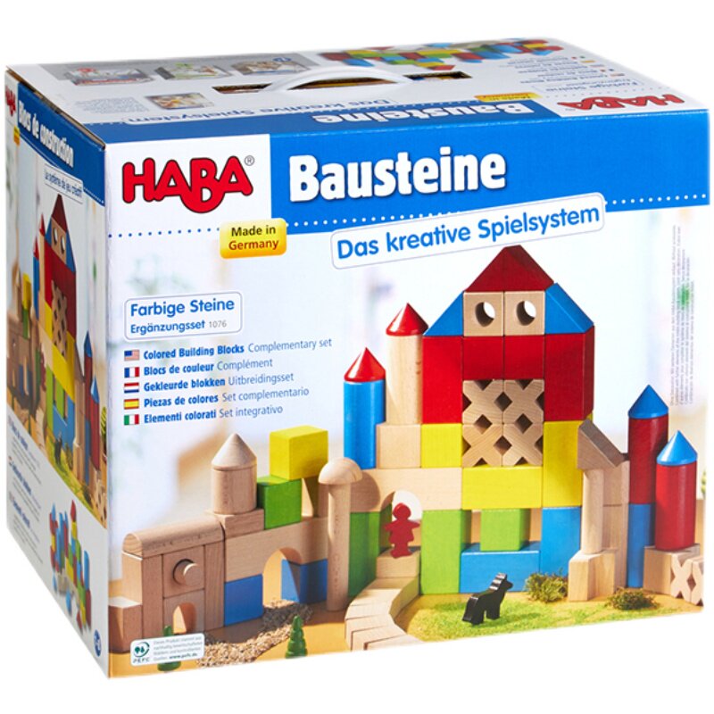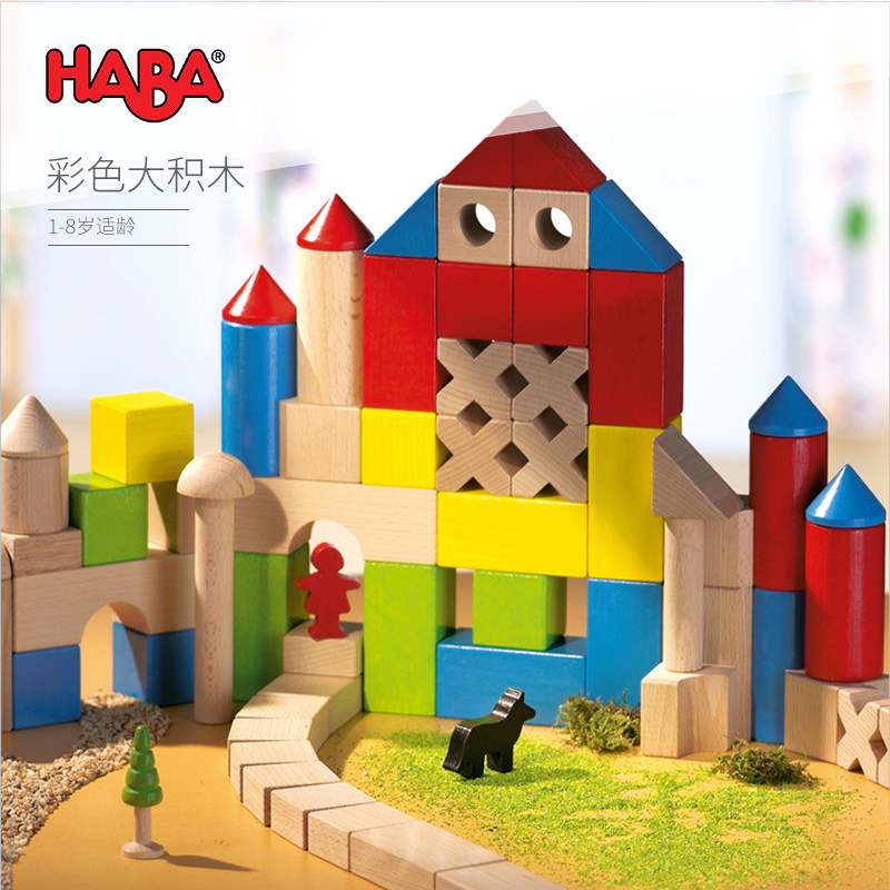 German HABA large block building blocks 30 pieces of colored beech wood geometries spelling 1-2-year-old children wood toys
