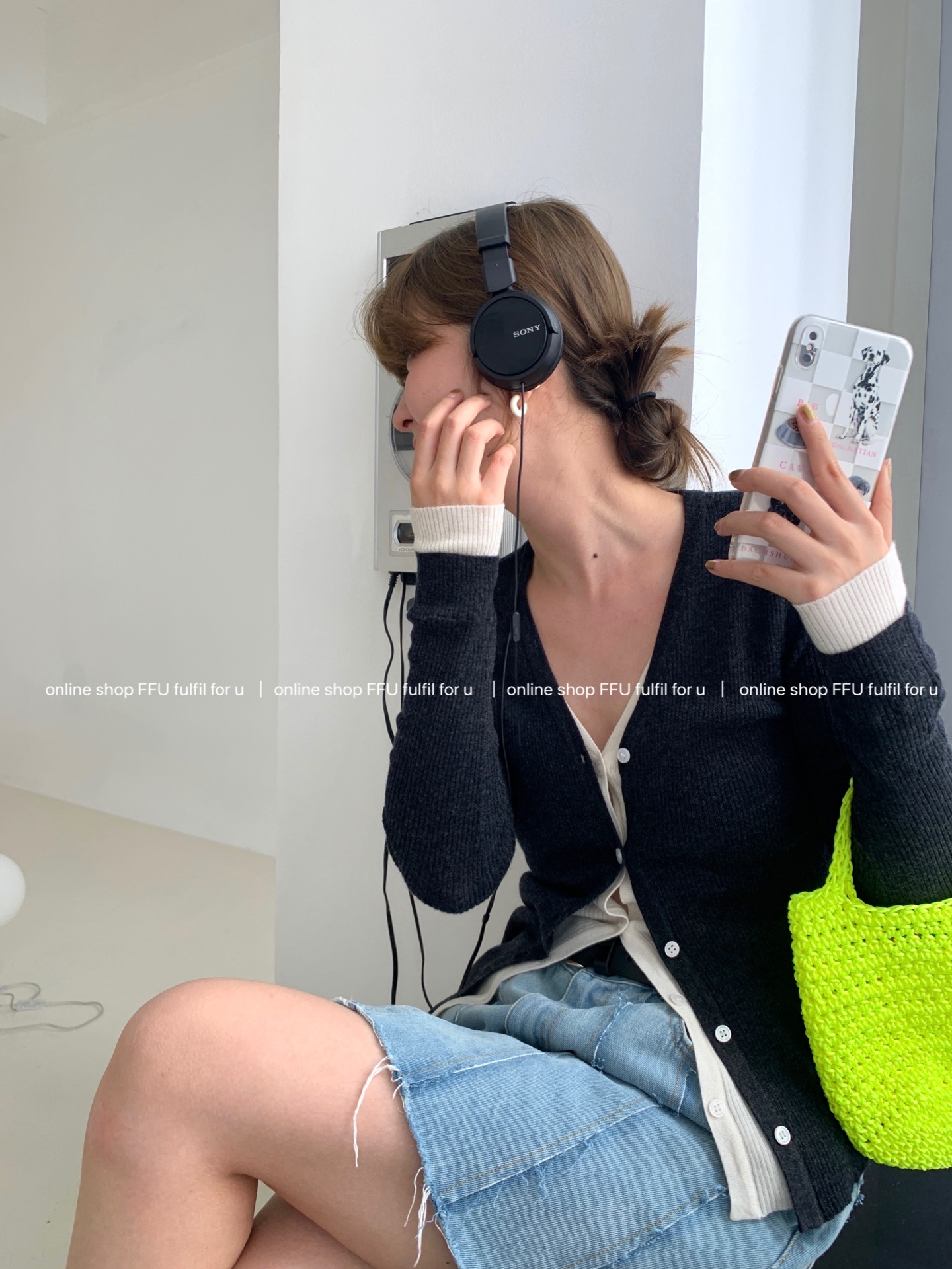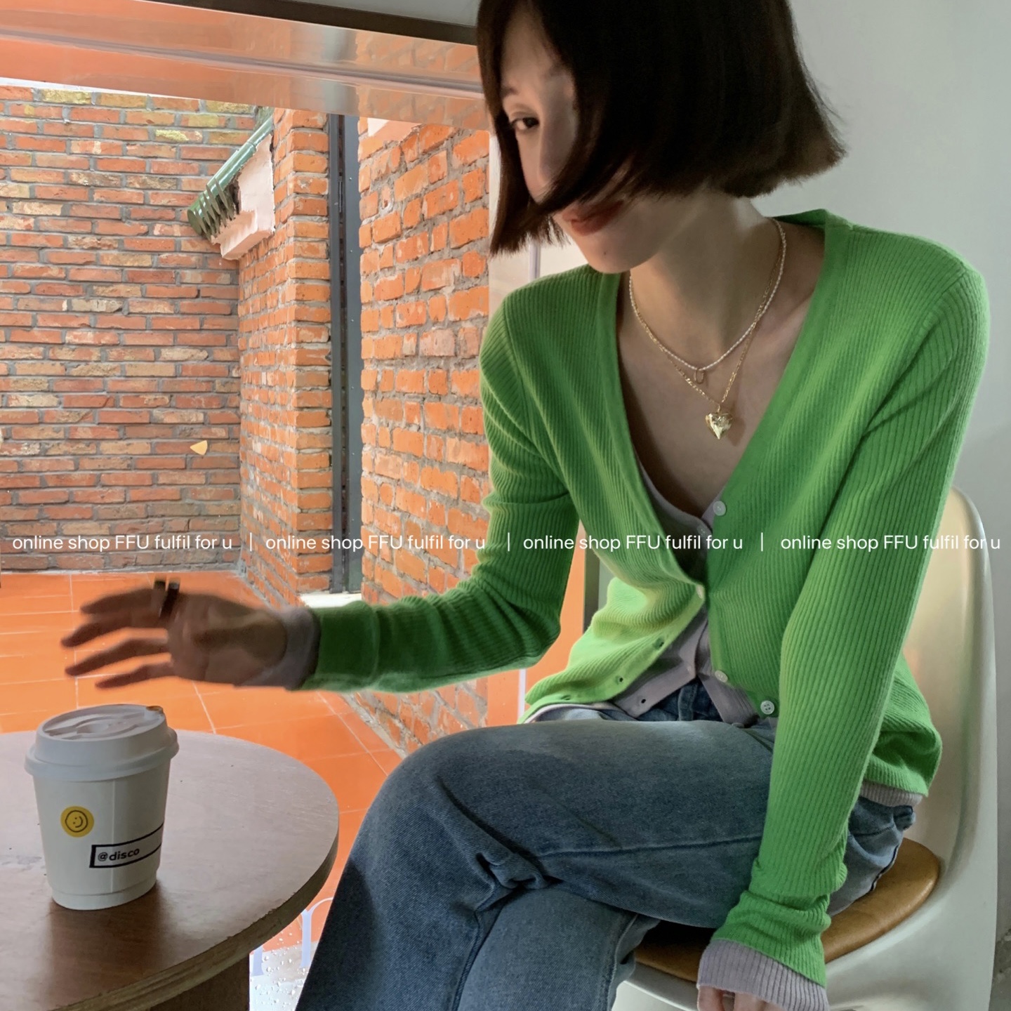 FFU Knitted Cardigan Women's Fake Two-Piece All-Wool Color Matching Slim V-Neck Top Trendy (Clearance)