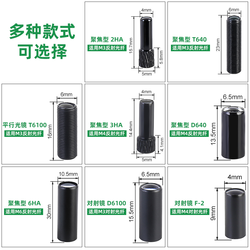 2HA (applicable M3 reflective optical fiber) 3HA (applicable M4 reflective optical fiber) 6HA (applicable M6 reflective optical fiber) D640 (applicable M4 reflective optical fiber) T64