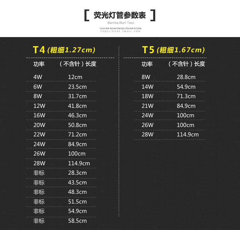 T4 6W (not counting needle 23 5CM) 2 T4 8W (not counting needle 31 7CM) 2 T4 12W (not counting needle 41 8CM) 2 T4