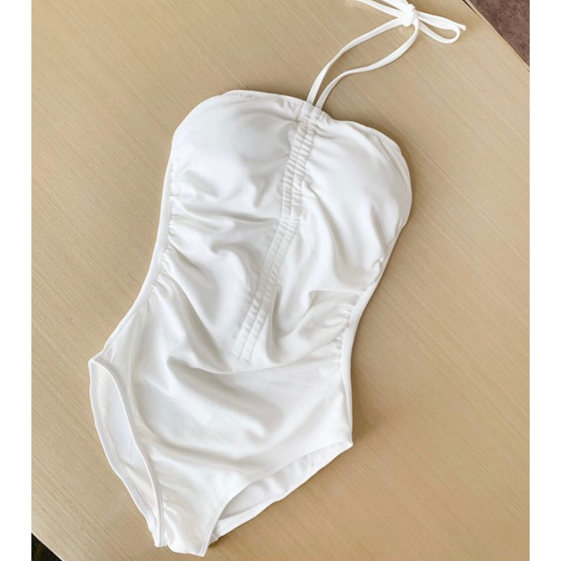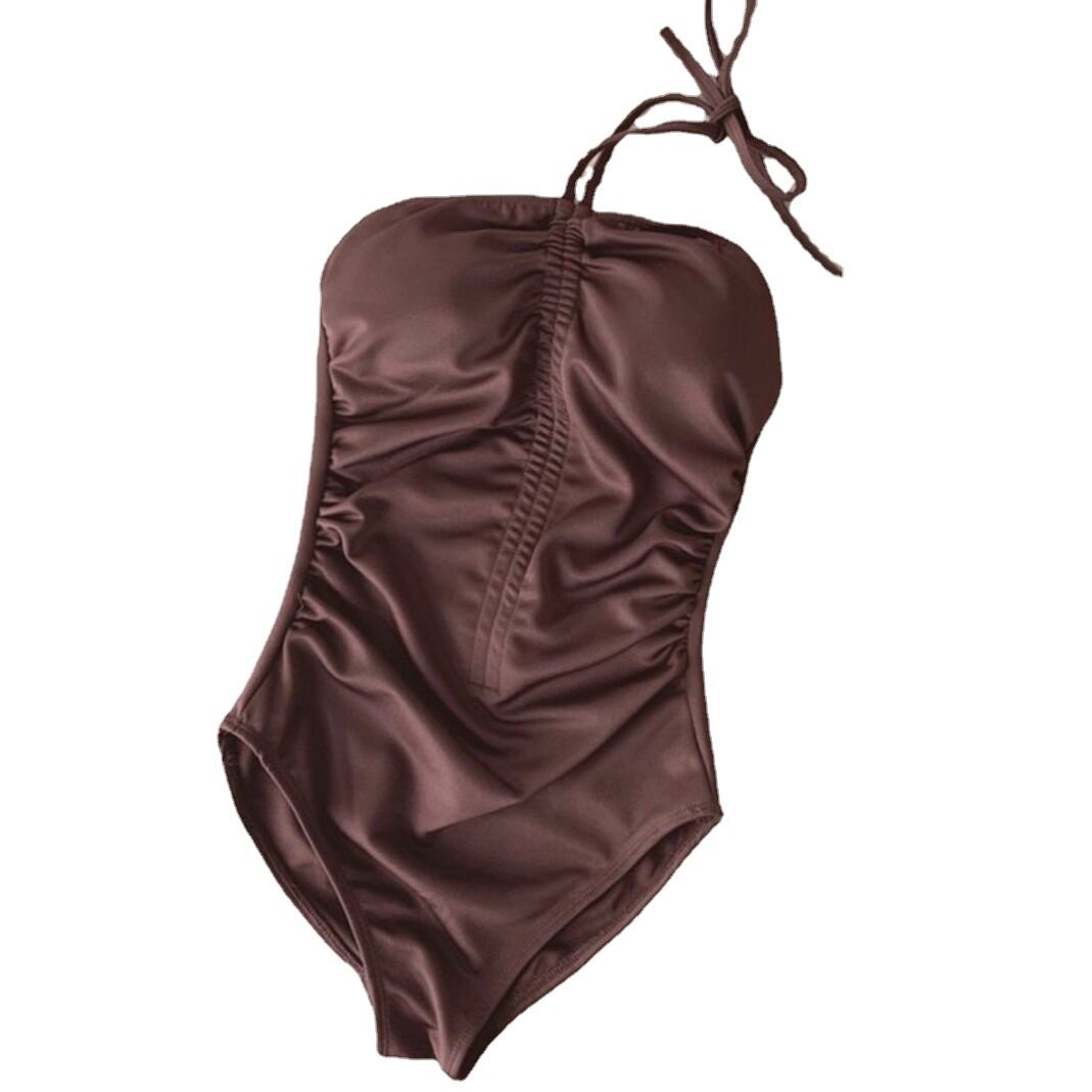 2021 new ins style simple drawstring with chest pad one-piece swimsuit women Korean version tube top sexy swimsuit girls