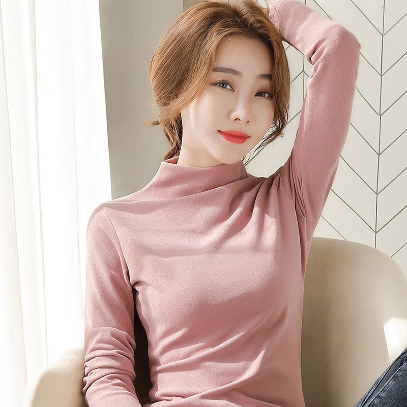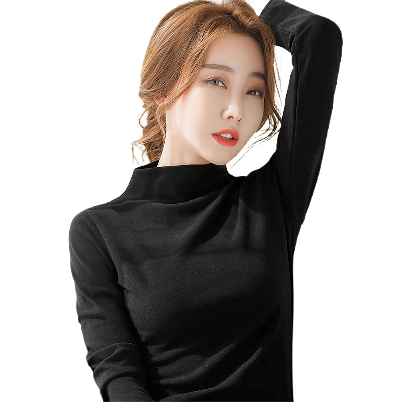 Bottom shirt women's autumn and winter inner black spring and autumn all-match 2022 new German velvet half-high collar long-sleeved t-shirt women's tops