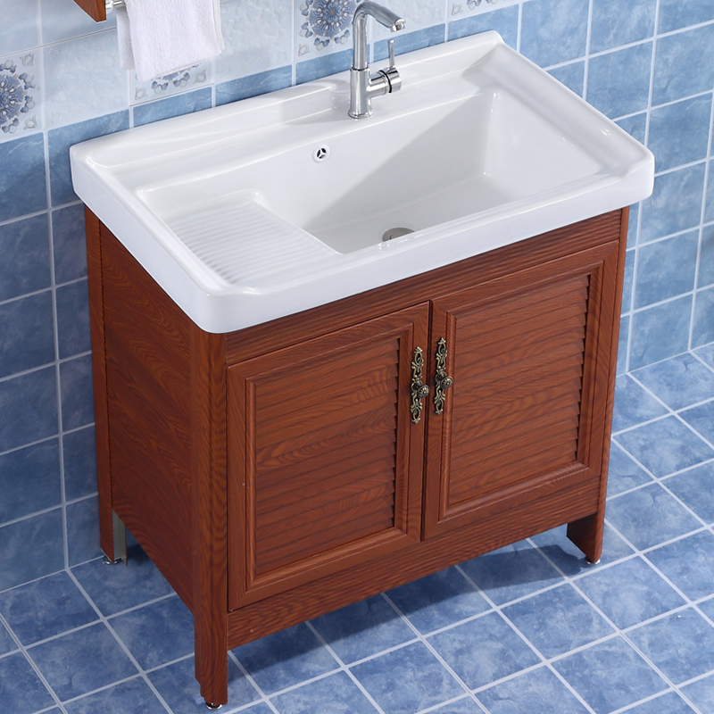 Ceramic Laundry Basin Integrated Basin Floor Bathroom Cabinet Washbasin Washbasin with Washboard Sink Balcony Washing Wardrobe