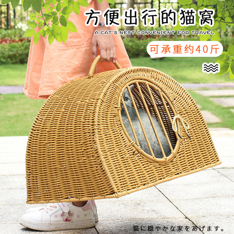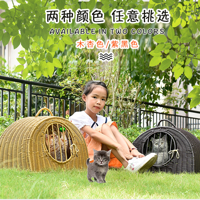 New rattan cat litter dog pet litter rattan travel carry-on indoor four seasons universal closed portable cage
