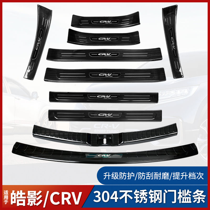 CRV-inner and outer threshold bar inner and outer rear guard plate-black titanium subsection (10 pieces sets) CRV-inner and outer threshold bar inner and outer rear guard plate-silver color black punctuate (10 pieces sets) CRV-inside and outside