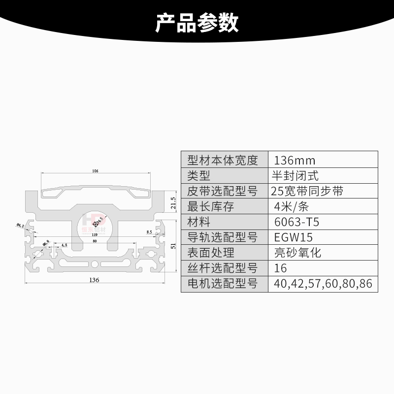 136 module base Type A (1 meter) 136 module cover Type A (1 meter) 136 module sliding table Type A (1 meter) HDB136A-C-Integrated main bearing seat-20 screw rod