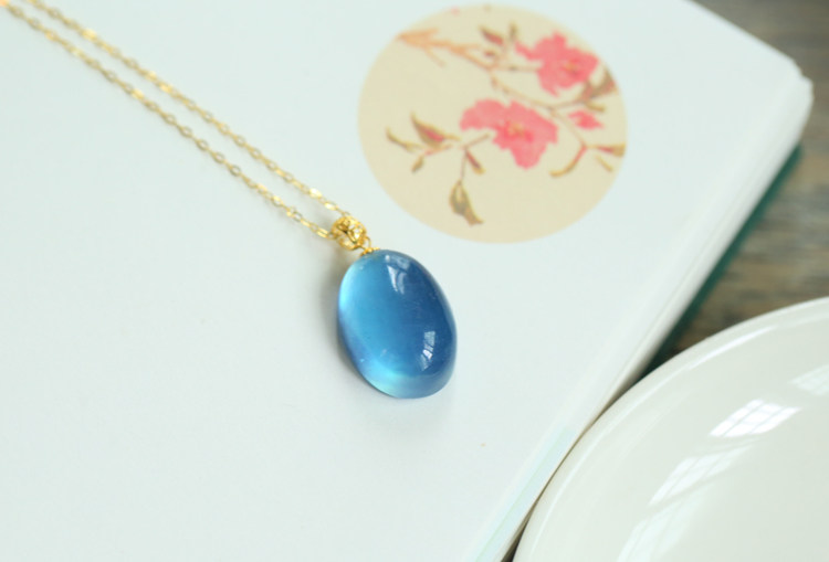 Natural Aquamarine Pendant Exquisite Small Clavicle Versatile Necklace Egg Face 18K Gold Buckle Gemstone Sweet Beauty Gift
