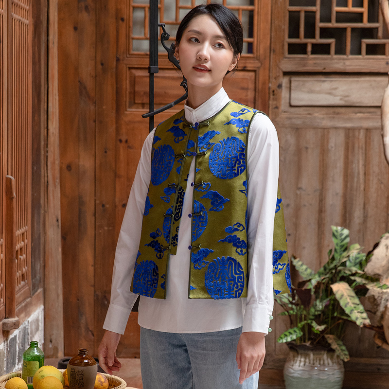 Silk velvet jacquard vest new Chinese fashion improved women's stand-up collar retro Tang suit women's vest vest