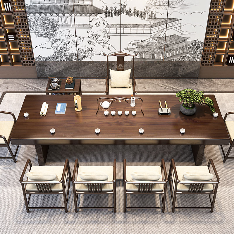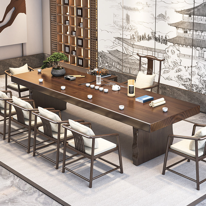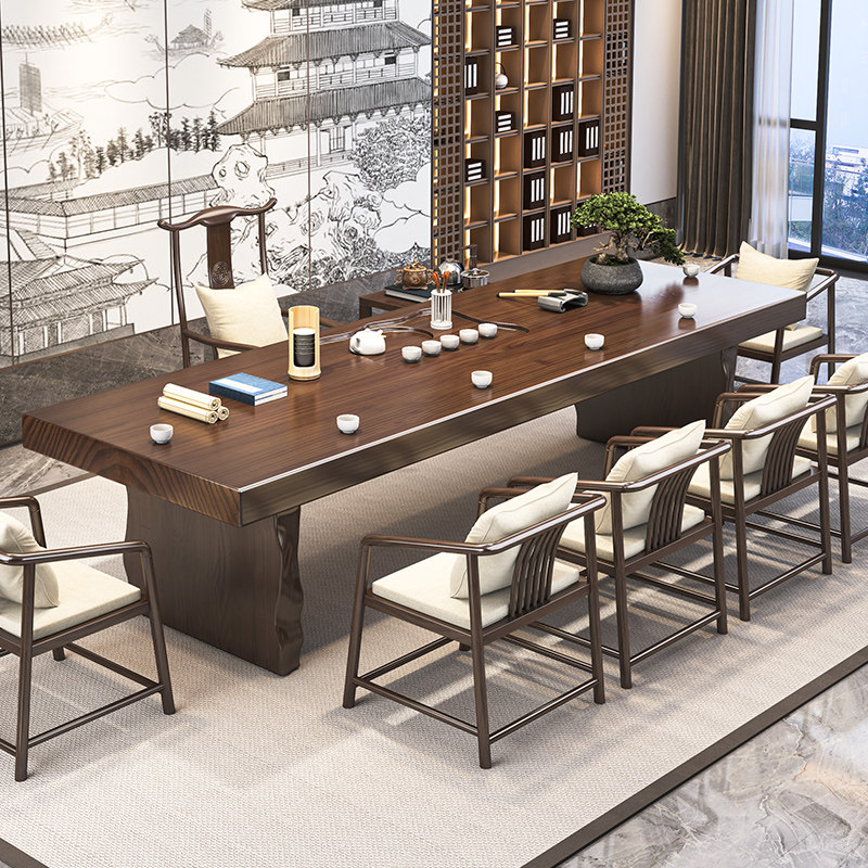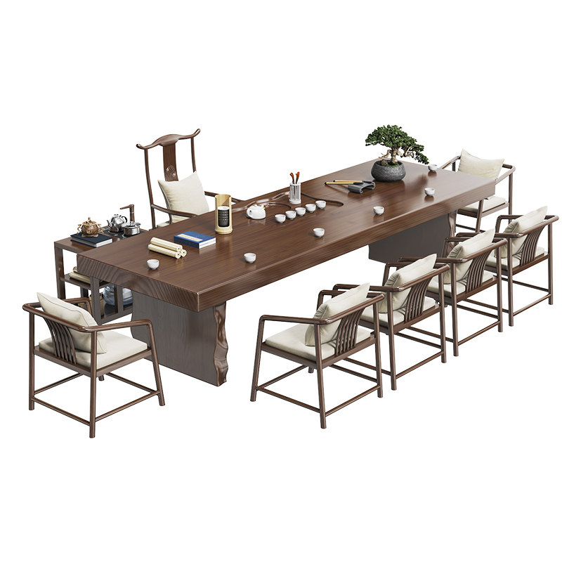 Solid Wood Tea Table Log Large Board New Chinese Meditation Office Tea Table Kung Fu Modern Minima Tea Table And Chairs Combination