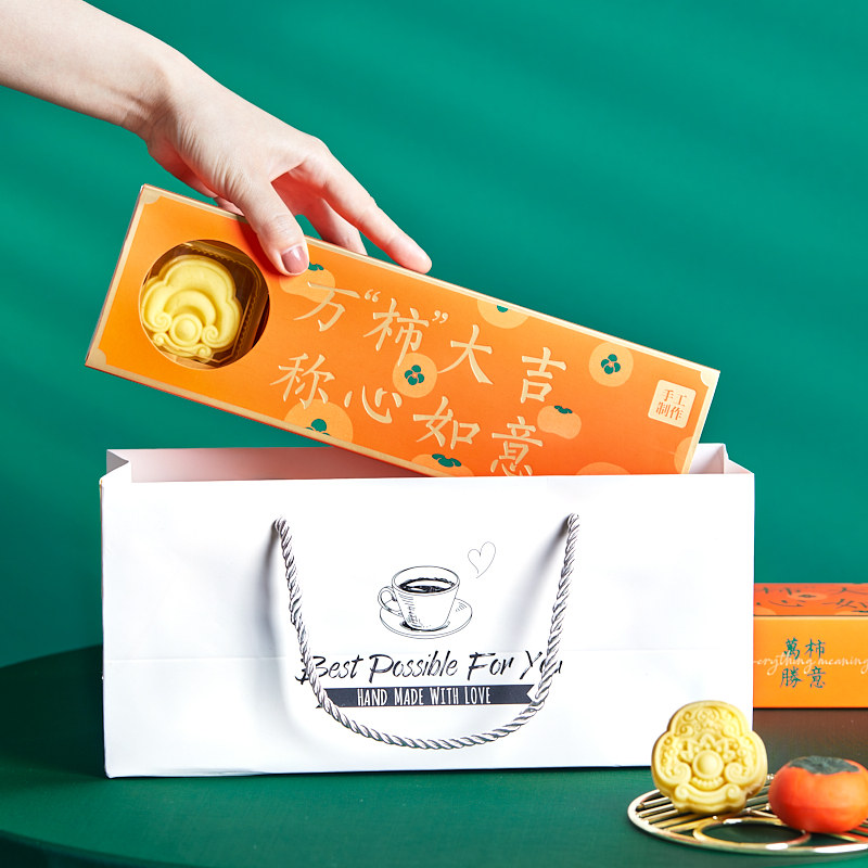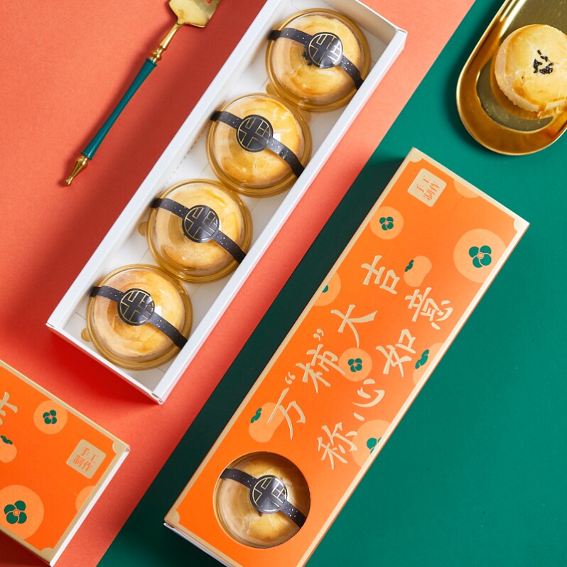 2021 Mid-Autumn Mooncake Gift Box 4 Packed Persimmon Peanut Box Four Egg Yolk Crisp Gift Packaging Biscuit Box