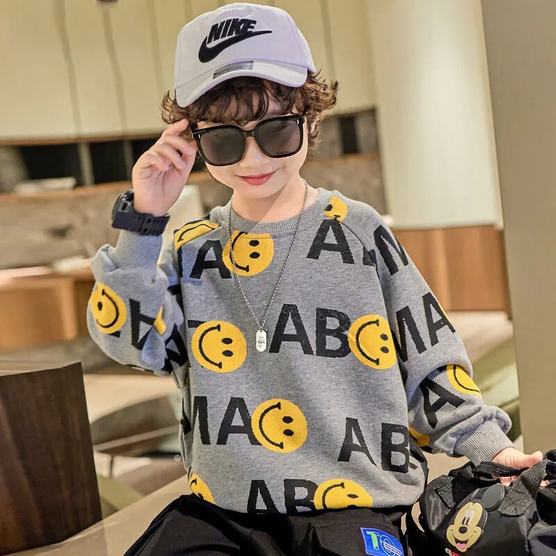 Boys Sweater 2021 Autumn Children's Spring Boys Spring and Autumn Men's Cotton Tide Loose Long Sleeve Letter Print Autumn Clothes