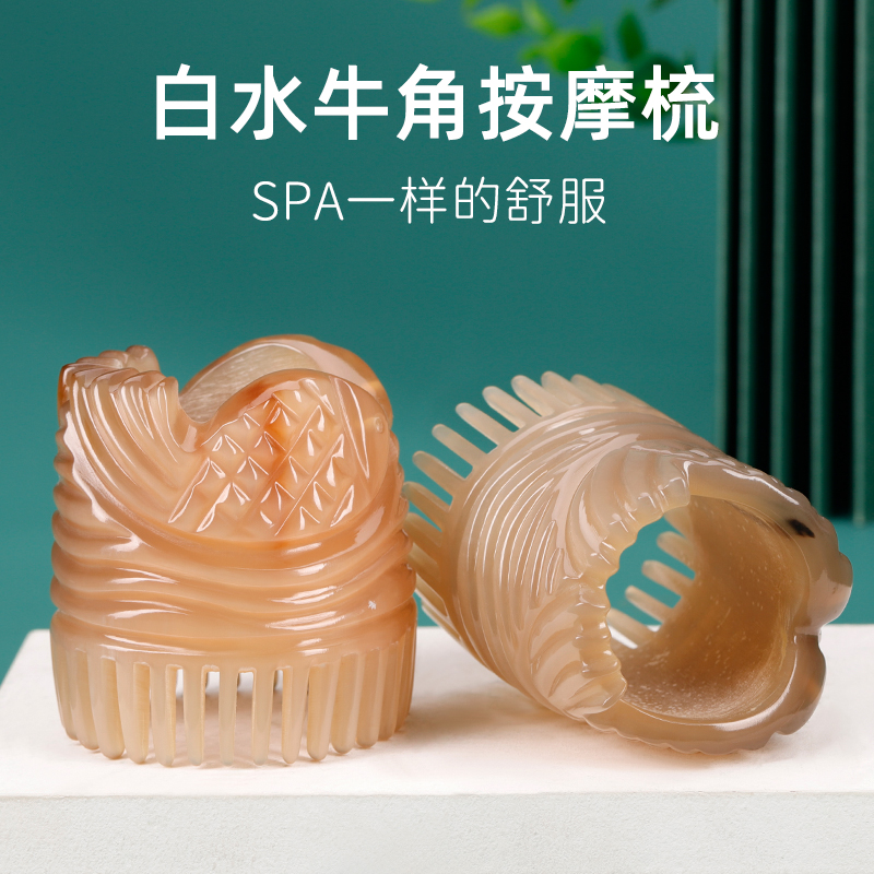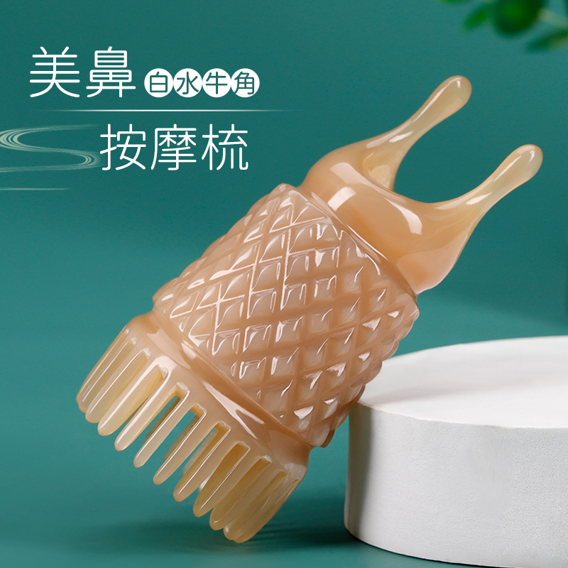 (White Buffalo Horn) year after year with fish-style massage comb (white buffalo horn) multifunction round massage comb (white buffalo horn) multifunctional beauty and nose massage comb
