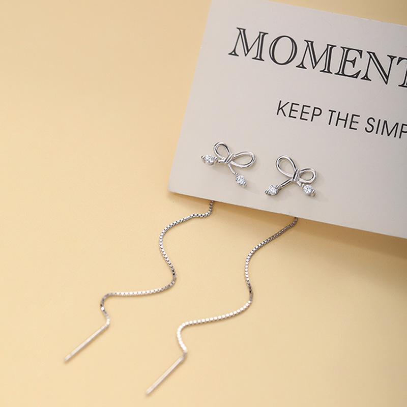 925 pure silver butterfly knot ear necklace with feminine temperament with a thin ear necklace long version of super fairy earrings