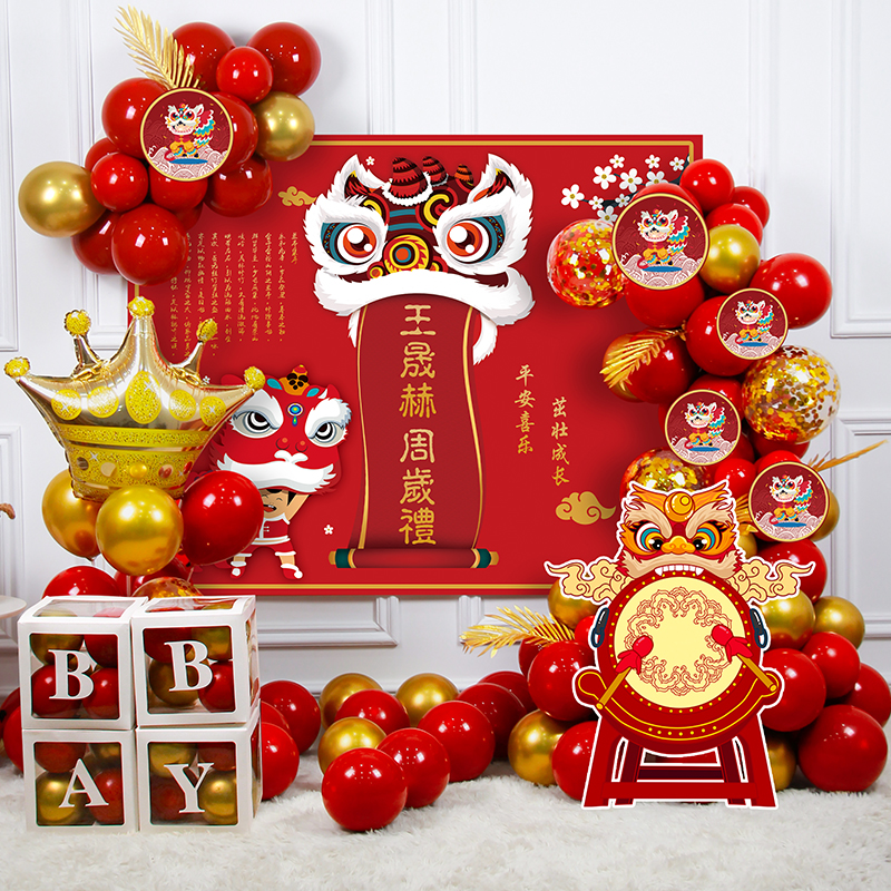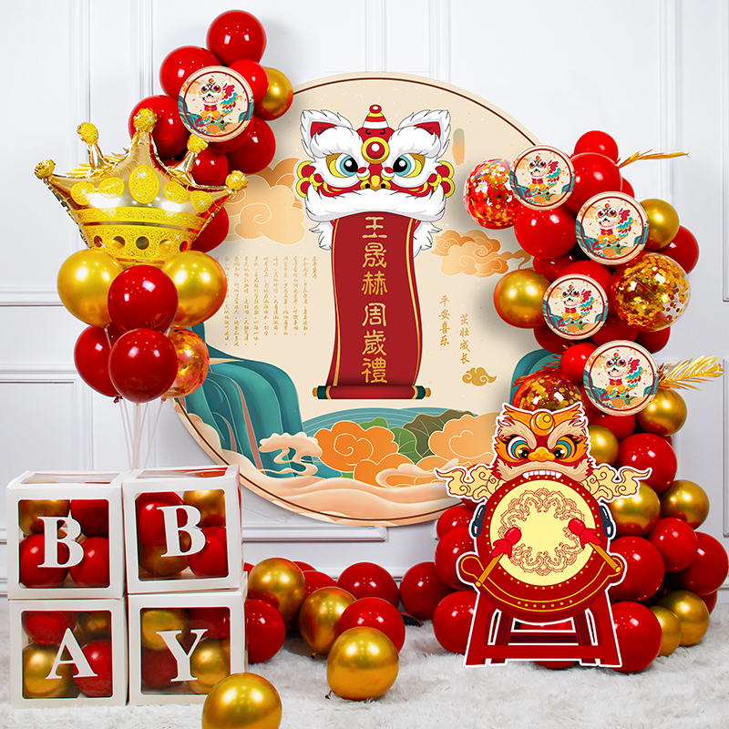 Female Baby Birthday Arrangement Decoration Boy Full Moon Feast 100 Days Arrest Week Gift Poster Balloon Scene Background Wall