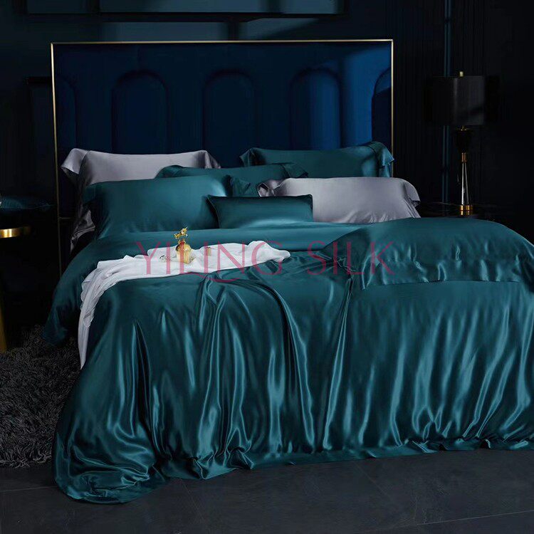 35 mmi heavy pound true silk four sets Nordic wide side mulberry silk bed hat type pure color silk kit flying edge