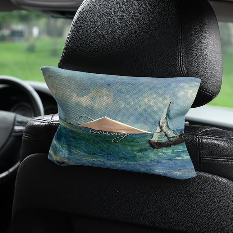 Van Gogh oil painting American on-board paper towel box suction paper box in car Hanging Paper Towel Cover Armrest Box Visor Universal Running-Taobao
