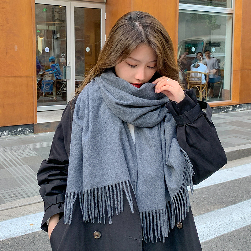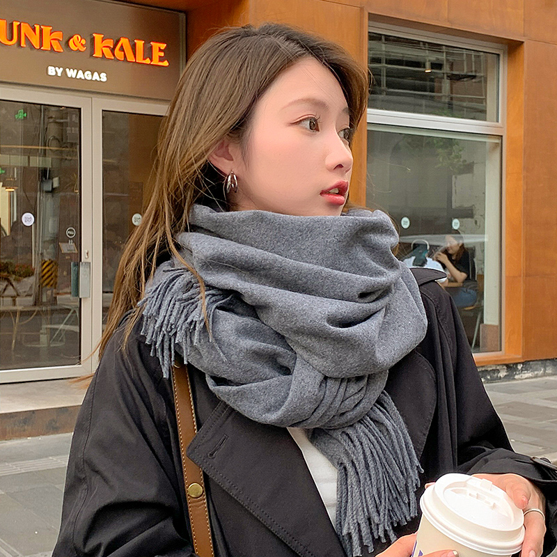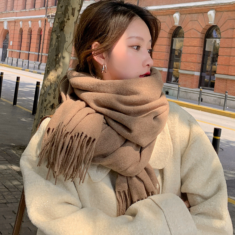 Scarf woman Winter Korean version 100 hitch cashmere pure color thickening warm 2023 new advanced senses oversize shawl-Taobao