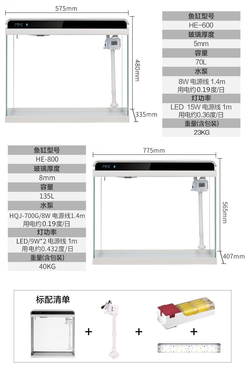 Sensen HE Ultra White Glass Small Fish Tank Living Room Small Desktop Home Aquarium Eco-Free Water Gold Fish Tank